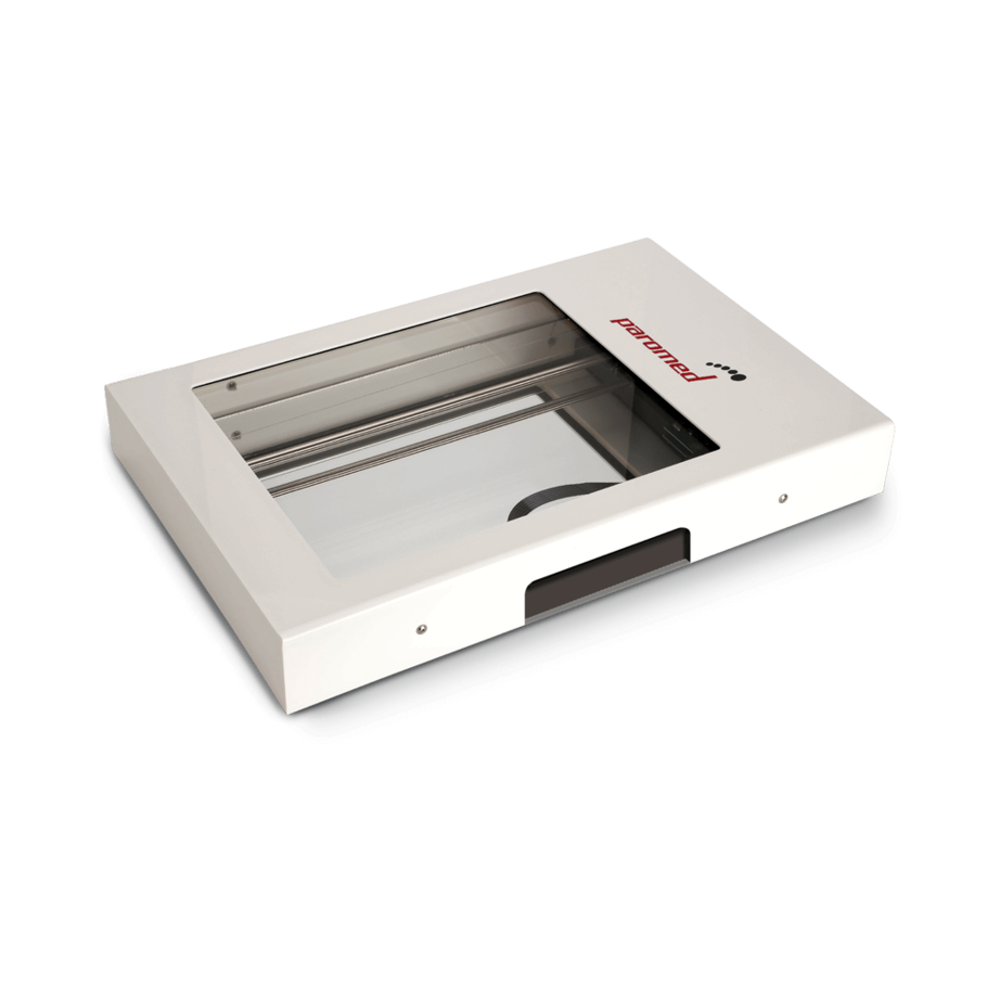 Der paroScan 2Dm bietet Scantechnologie auf höchstem Niveau – und das überall: Denn mit seiner kompakten Bauweise und seinem geringen Gewicht eignet sich der handliche 2D-Scanner sowohl für den stationären als auch für den mobilen Einsatz. Und durch den Einbau einer stabilen Glasplatte ist auch das Scannen von Personen mit einem Gewicht bis zu 150 kg kein Problem.